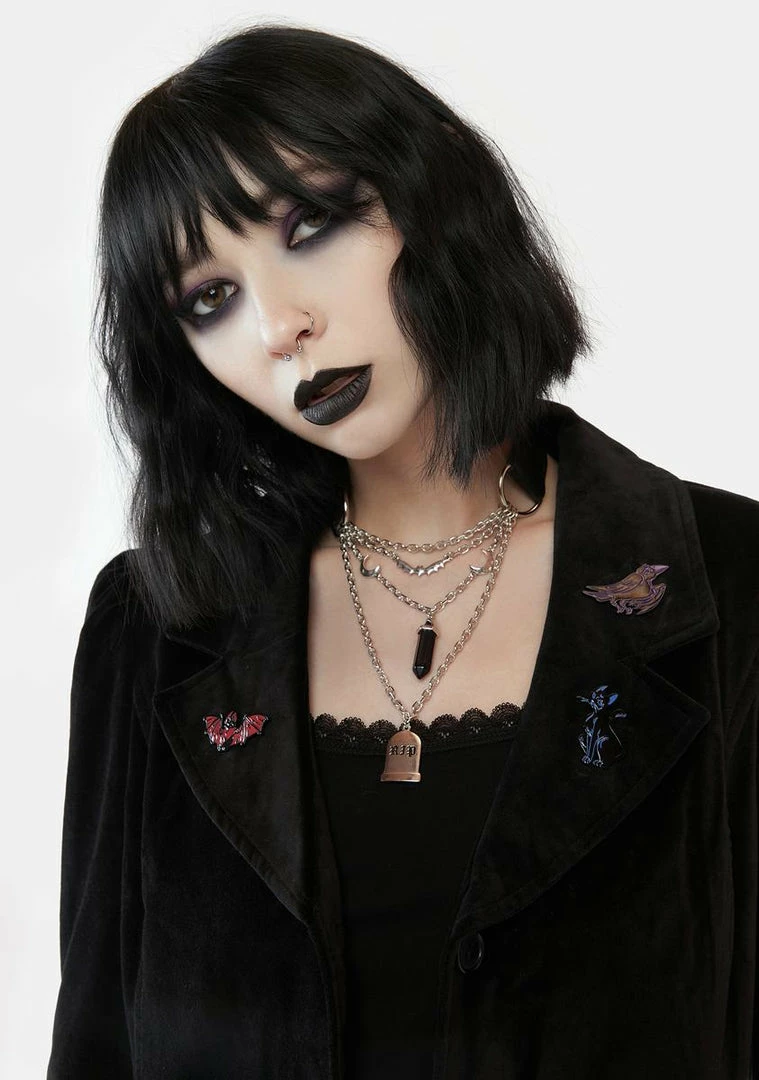cuz sometimes humans don’t understand you. These enamel pins come in a set of three and feature each of The Grave Girls’ pets: Star the cat, Amber the raven, and Shadow the bat.