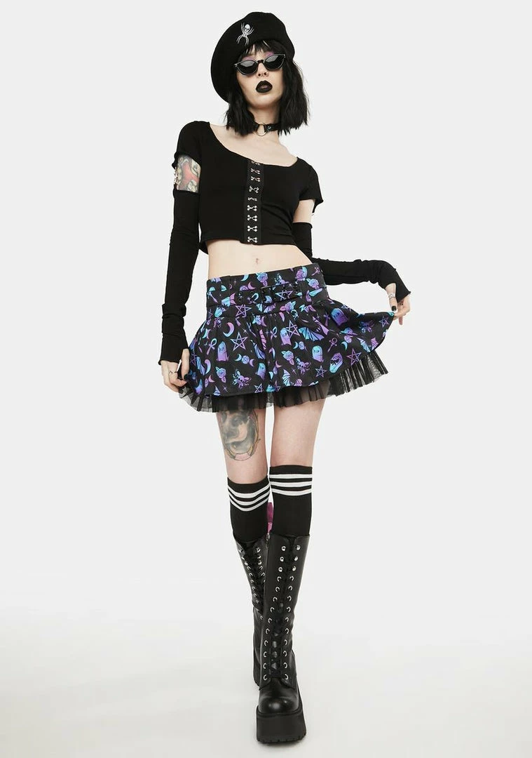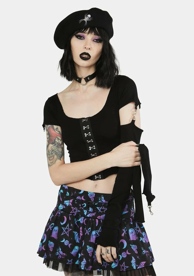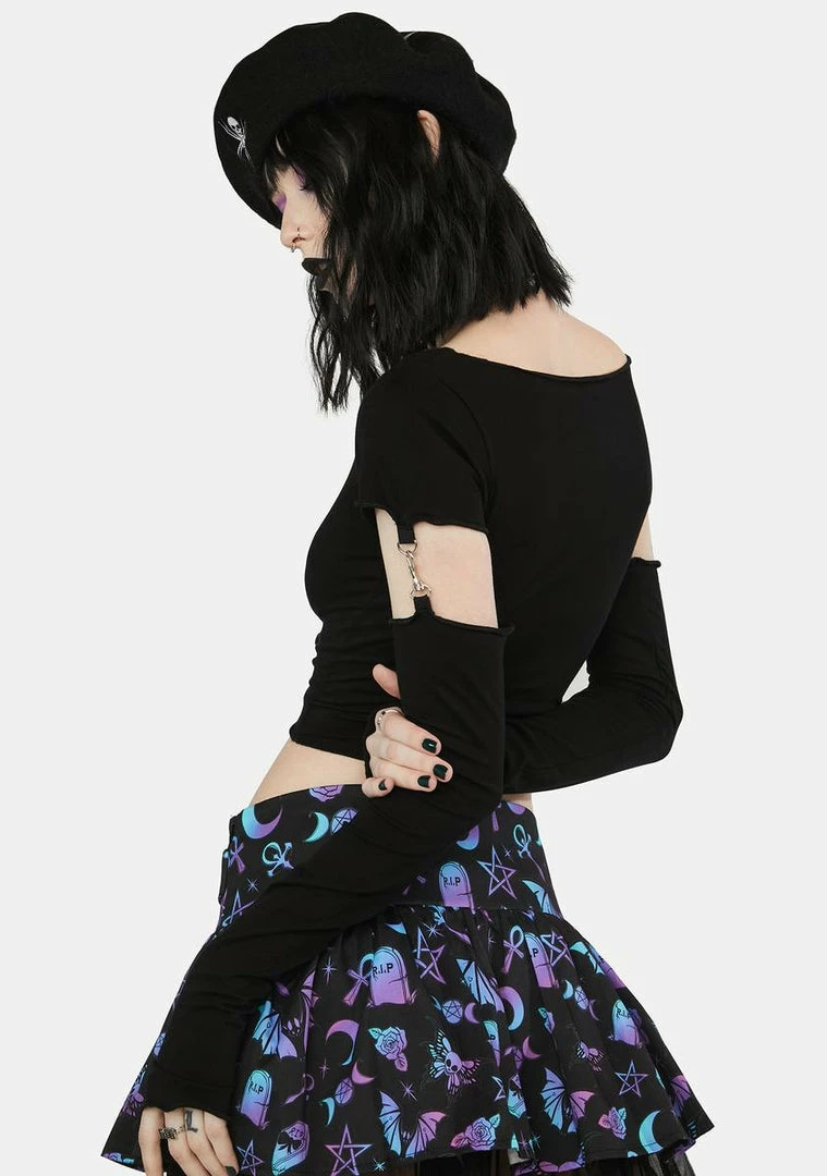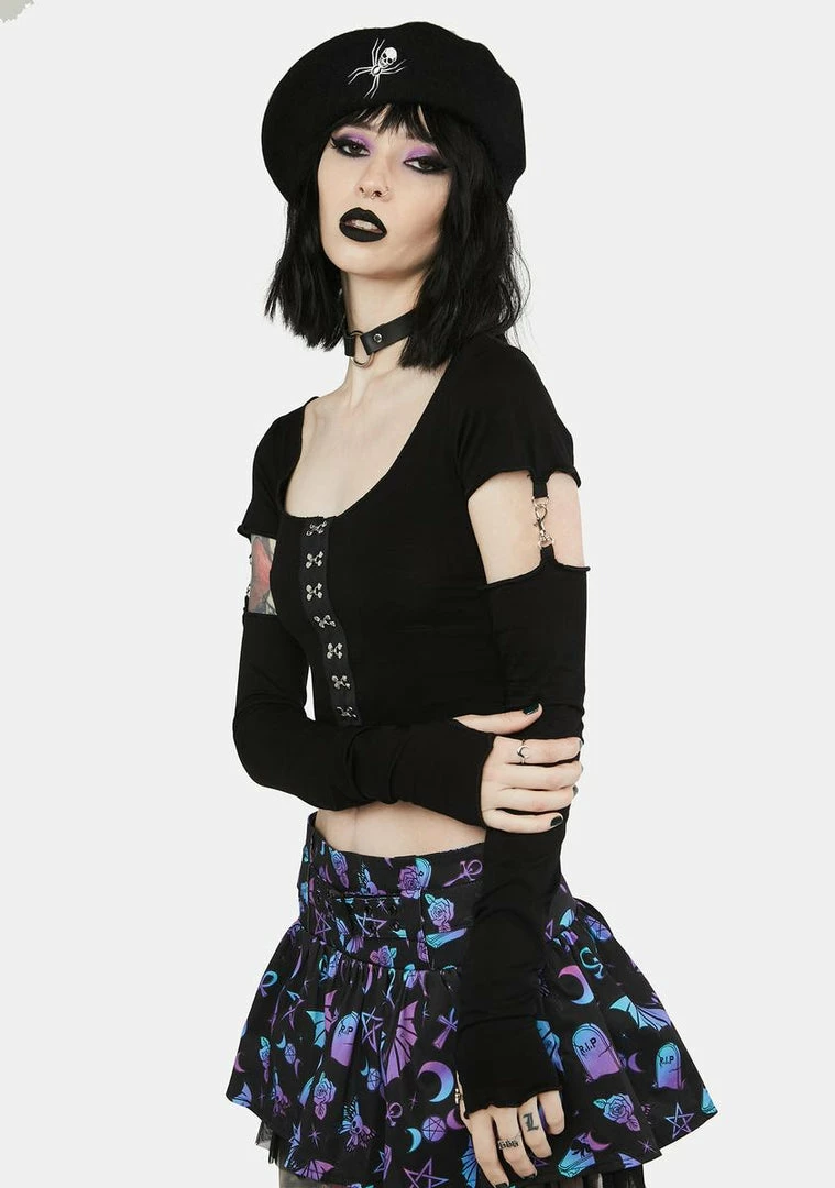 cuz it’s time for some dark magic. This top has a scoop neckline, a cropped fit, ribbon detailing, and convertible long sleeves with clasp closures.