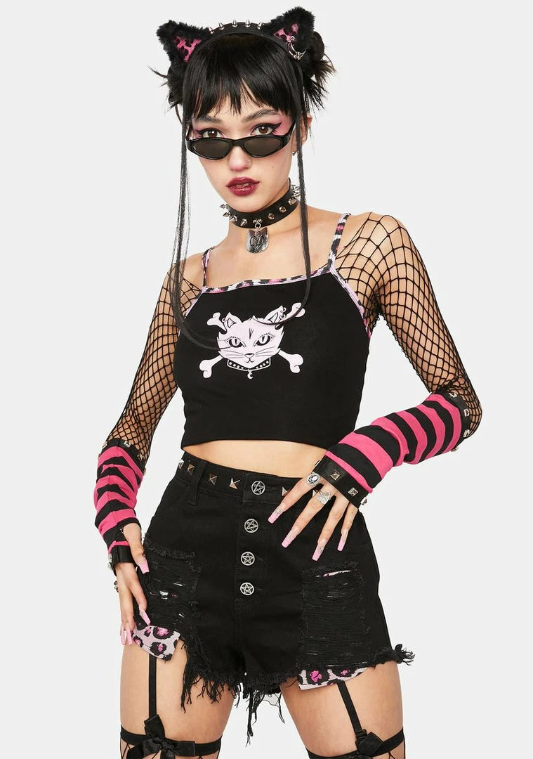 Brand new ๐ The Grave ๐ง Girls Don’t Cross Meow Denim Shorts High Waist Shorts ๐