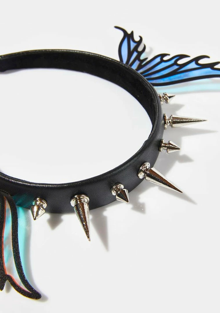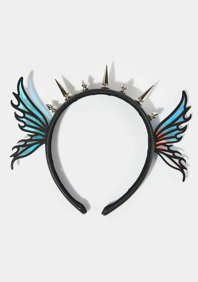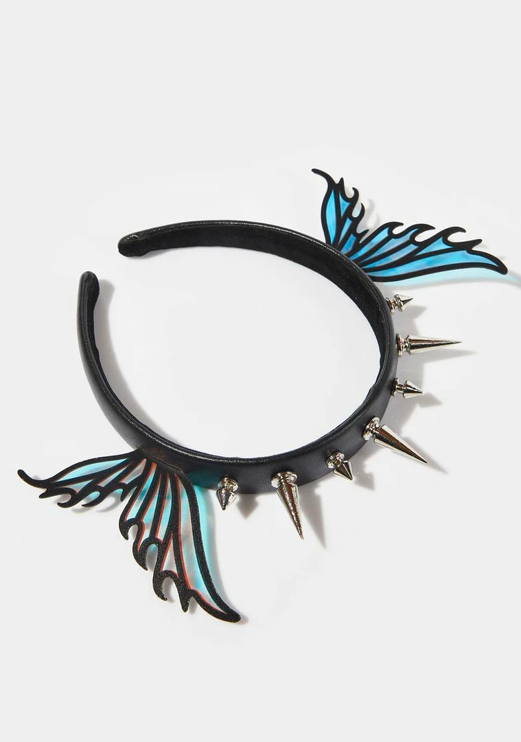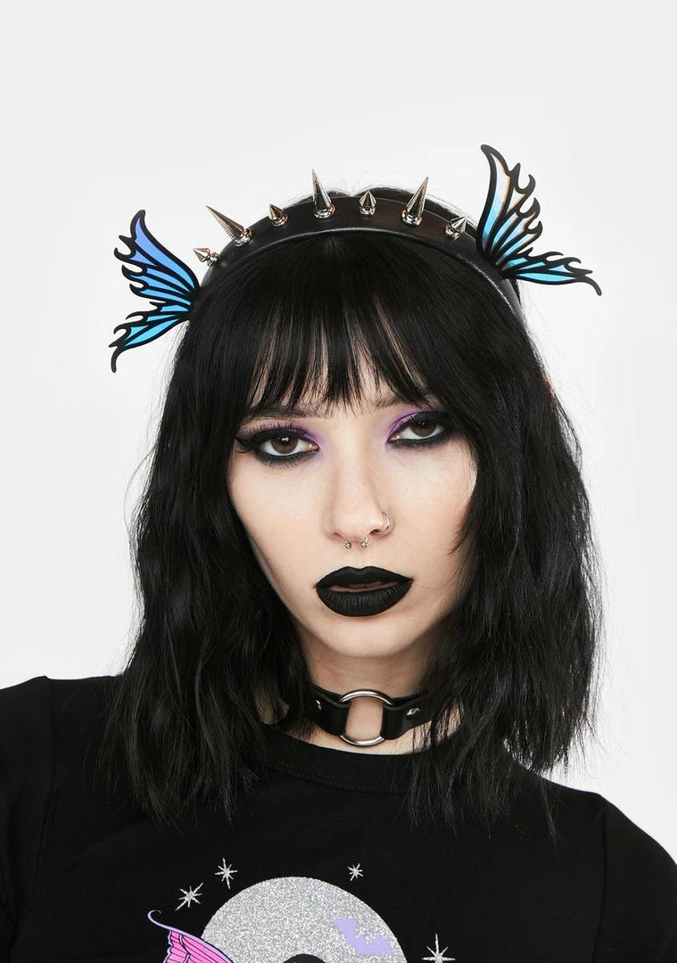 cuz you’re up to some magical mischief. This vegan leather headband has iridescent fairy wings on the sides and spikes in the front.