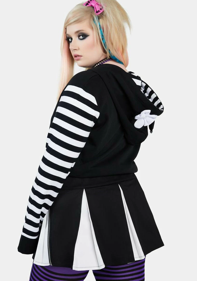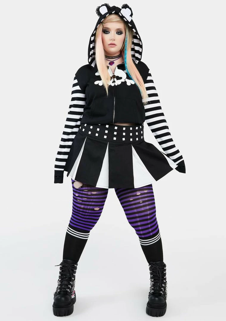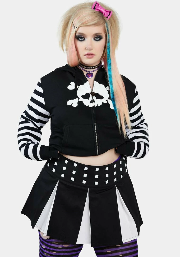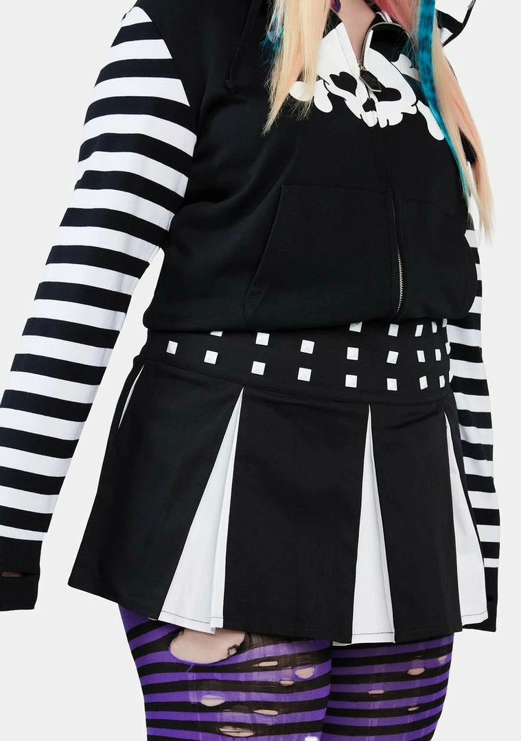 cuz I got followers. This pleated mini skirt has a two-tone design, pyramid stud detailing, and a side zip closure.