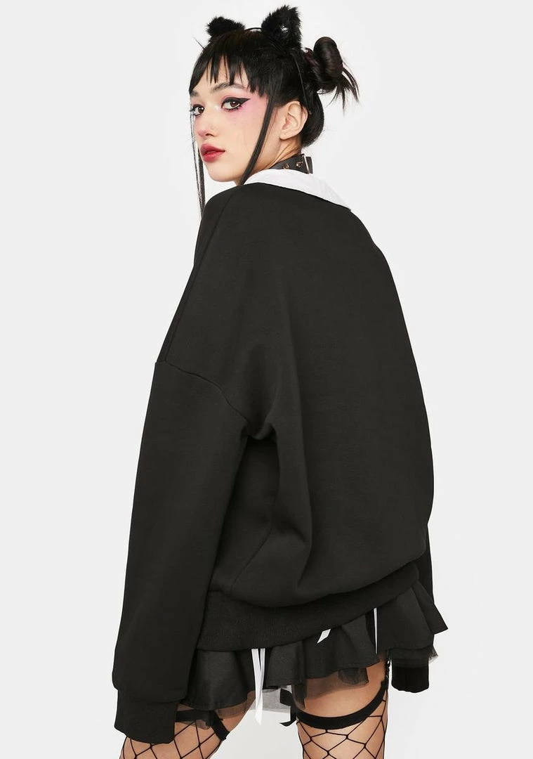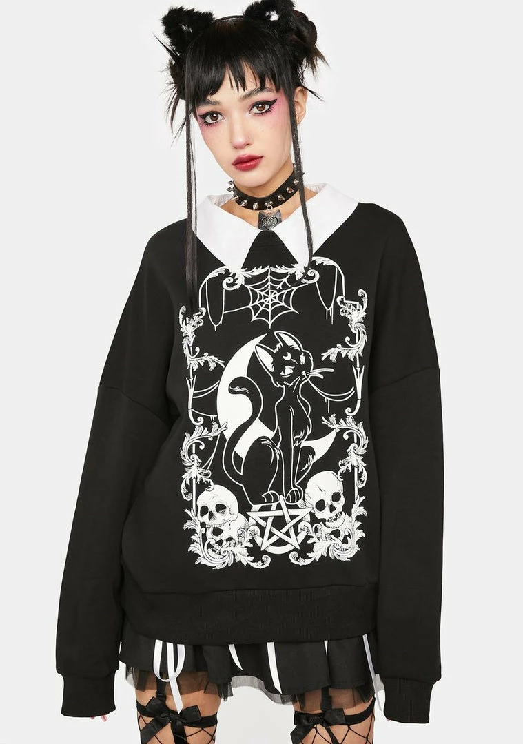 Discount 🤩 The Grave 👧 Girls Purrfect Match Collar Sweatshirt Tops ✨