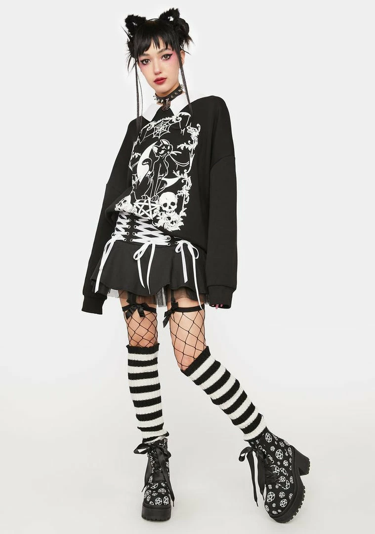 cuz BFFs forever. Show your love for the divine felines in this sweatshirt that has a contrast collared neckline, long sleeves, a soft inner lining, an oversized fit, and a printed graphic of Star the cat on the front.