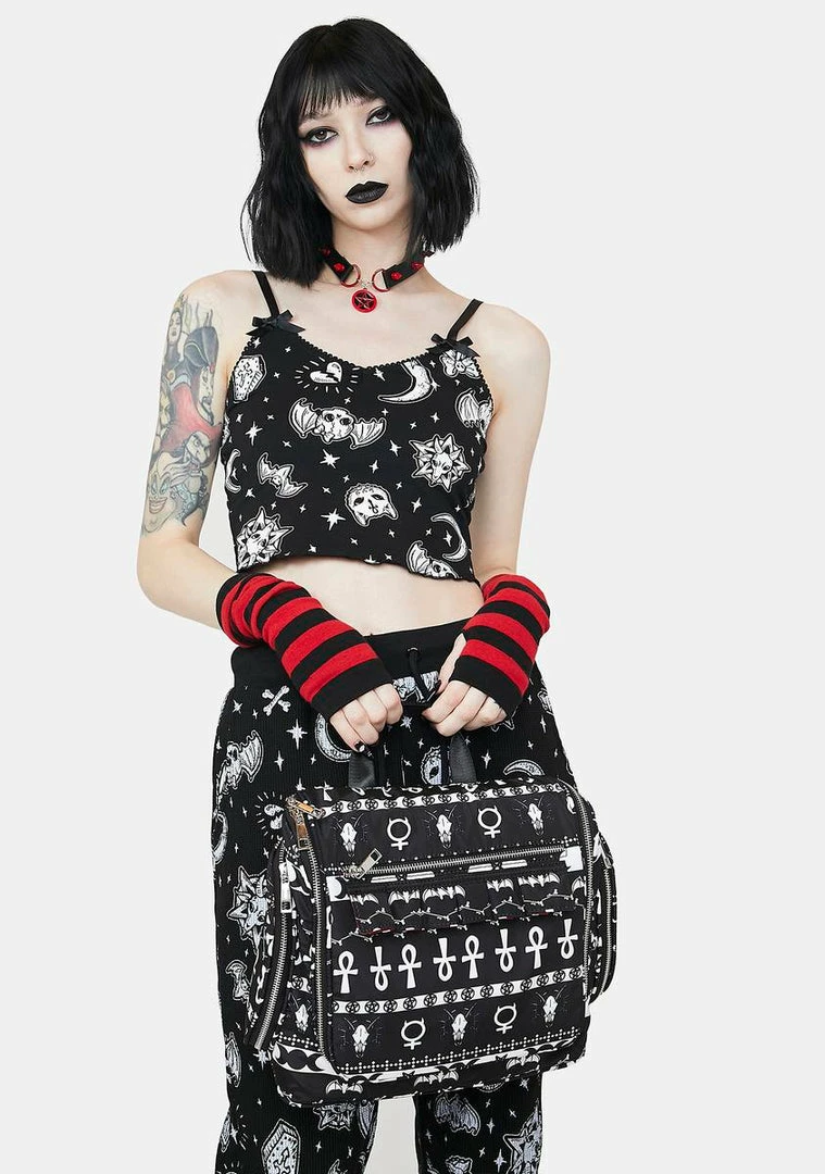 cuz you’re being bad and looking good. This travel makeup bag has multiple zippered compartments and a gothic fairisle pattern all over.