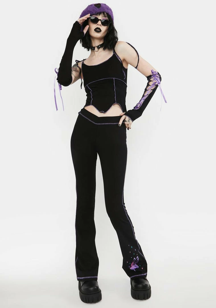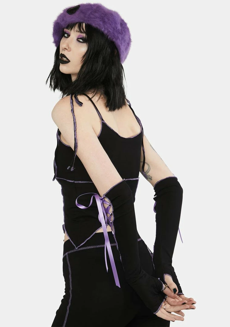 cuz you got them under your fairy dust. This tank top comes with adjustable shoulder ties, contrast stitching, a V-cut hem, a cropped fit, and ribbon lace up gloves.