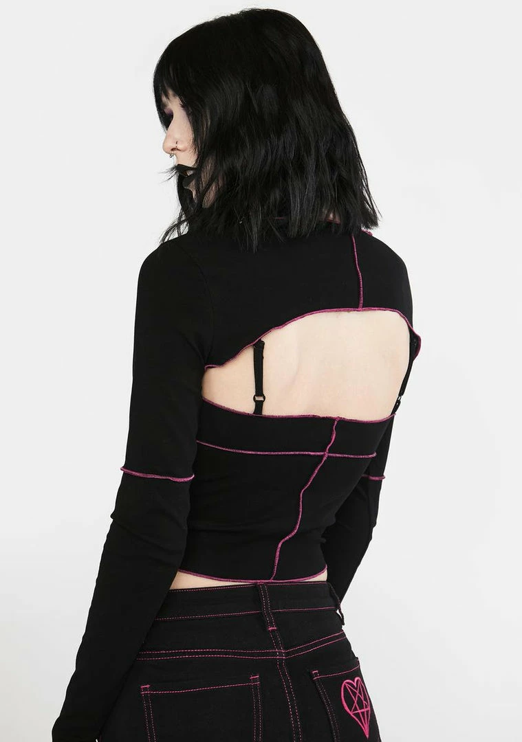 cuz you never know who might have that twinkle touch. You’ll be the ultimate in fairycore in this cut-out shrug top that has long sleeves, a matching tank top with adjustable shoulder straps, contrast stitching, and a cropped fit.