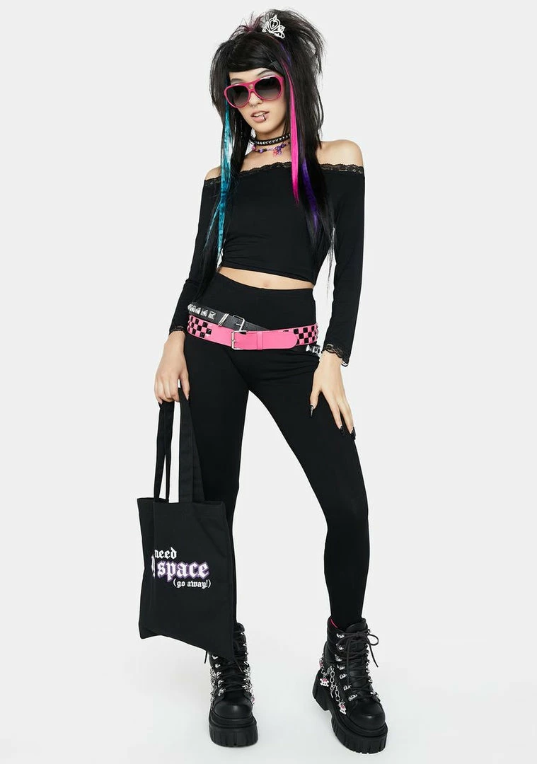 cuz you’re a number one hit! This crop top has an off the shoulder design, long sleeves, lace trim, and a stretchy material.